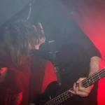 CULT OF LUNA kamen, wie schon bei der letzten Tour, ohne Sänger Klas Rydberg, waren also nur zu sechst auf der Bühne, konnten aber immerhin mit ihrer Triple Axe Attack aufwarten. Wie gewohnt sparten sich die Schweden Ansagen und Kommunikation mit dem Publikum und füllten die Pausen zwischen den Songs mit Synthie-Sounds und Gitarrengewaber, so dass der Eindruck eines einzigen langen Songs entstand, was für eine entrückte, sphärische Atmosphäre sorgte. Die Anwesenden im ziemlich vollen Keller ließen sich widerstandslos von dem dunklen Charme der Musik einfangen und sich in eine andere Welt treiben. Auf den Sofas in der rechten Ecke des Kellers genossen Fans die Darbietung mit geschlossenen Augen und in entspannter Lage, während die stehende Fraktion bedächtig ruhig blieb und nur bei den wenigen aggressiven Ausbrüchen im Sound in Bewegung kam. Die einzigartige Atmosphäre der Show, die so vielleicht noch NEUROSIS hinbekommen, nahm einfach jeden gefangen, da paßten so profane Dinge wie Zwischenrufe, Unterhaltungen oder auch nur schnelle Bewegungen nicht ins Konzept. Die Mucker auf der Bühne schienen ähnlich entrückt zu sein und sparten auch untereinander mit unnötigen Worten oder schnellen Bewegungen. Getoppt wurde das alles von der stimmungsvollen Lightshow, die in Verbindung mit dem großzügig eingesetzten Nebel die richtigen Akzente setzte. Irgendwann war es dann vorbei und CULT OF LUNA entließen die Menge nach und nach wieder in die Realität eines immer noch regnerischen kalten Abends.