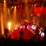 Als "Headliner" des Abends traten um 22.25 Uhr die Schweden HAMMERFALL auf die Bühne und starteten alsgleich mit Ihrem aktuellen Titeltrack des Silberling "Threshold" sowie "Templars Of Steel" und einer Menge Pyroeffekten. So ganz rund sollte der Abend für die Fünf jedoch nicht verlaufen, doch zum Glück wirkte sich das weder auf Stimmung der Fans, noch der Band selbst, negativ aus. Das viel zu früh eingespielte Intro von "Renegade" brachte kurzzeitig Hektik bei Oskar und Joacim, da es nicht sofort gestoppt werden konnte, doch sie wären nicht Profis, hätten sie nicht gleich wieder den Rhythmus gefunden. Und so konnten Sie die vielen Anfeuerungsrufe während "Riders Of The Storm" und "Rebel Inside" wieder in vollen Zügen genießen. Der neue und zugleich alte Basser Fredrik Larsson machte bei seinem ersten Deutschlandauftritt eine gute Figur, fast erhielt man den Eindruck, er sei nie fort gewesen. Während Songs wie "Blood Bound" und "Reign Of The Hammer" konnten die Die Hard Fans natürlich jede Zeile mitsingen und diese Sangeskraft bewiesen sie auch kurzerhand mit einem lautstarken "Happy Birthday", als Joacim Cans bei der Bandvorstellung erwähnte, dass Drummer Anders Johansson heute Geburtstag habe. Kurz darauf rutschte Oskar Dronjak während "Renegade" aus und setzte sich gepflegt auf den Allerwertesten, doch zum Glück schien nicht viel passiert zu sein und er spielte alsgleich weiter. So konnten mit "Glory To The Brave" und "The Fire Burns Forever" zwei weitere Hymnen folgen, bevor "HammerFall" den offiziellen Abschluss bildete. Doch ohne Zugaben ließ man die Herren natürlich nicht von der Bühne gehen. Mit "Hearts On Fire" konnten sie schließlich keinen besseren Abschluss finden, denn an diesem Abend waren definitiv alle Hearts On Fire. (ten)