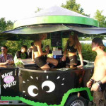 Eine andere Gruppe, die sich neben uns breit gemacht hatte, sorgte für eine über die gesamte Festivalzeit andauernde, immer gleiche Geräuschkulisse: "*klackklackklack*-"einszwodreivier"-*tröööööt*". Die Damen und Herren hatten nicht nur einen Trichter zum stetigen Volltanken parat, sondern verfügten zudem noch über einen unendlichen Vorrat an kleinen Schnapsfläschchen, die sie fast schon im Minutentakt erst auf den Tisch klopften, herunterkippten und dann mit lautem Trötenblasen besiegelten. Wie viele Bands die Truppe aber effektiv gesehen hat, entzieht sich meiner Kenntnis...