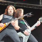 Weiter ging es mit Schweden Rock bzw. eher Melodic Schweden Tod und zwar in Form von einem wahren Aushängeschild in diesem Genre. DARK TRANQUILLITY gehören schon seit Jahren zu den besten Combos aus Schweden. Leider blieb ihnen bislang der Megaerfolg wie anderen Skandinavischen Kollegen versagt. Nichtsdestotrotz zeigten die Mannen um Mikkael Stanne wo der Hammer hängt und mit ihrem aktuellen Album "Fiction" im Gepäck wurden sowohl neue Granaten wie "Misery´s Crown" oder "Focus Shift" oder alte Kracher wie "Punish My Heaven" durch die PA gedonnert. Das fröhliche Auftreten der Band macht sie jedesmal sehenswerter und auch die Spielfreude die die Herren an den Tag bringen ist einfach sensationell. Die Fans dankten es DT und bangten sich bei Hits der Marke "The Wonders At Your Feet" oder "Final Resistance" die Birne krumm. Um den Sound und die Athmosphäre der Band richtig aufzunehmen, musste man sich schon ein Plätzchen in den vorderen Reihen suchen. Weiter hinten ging aufgrund des Windes schon sehr viel an Druck und Sound verloren ! Eigentlich schade, wenn man bedenkt das nicht jeder durch "My Negation" oder "The Treason Wall" in den Bann der Schweden gezogen wurde. Für diese Uhrzeit gaben DT auf jeden Fall alles und als Mikkael auch noch verkündete, daß eine weitere Tour in Deutschland geplant ist, konnten wirklich alle Fans auf einen gelungenen Gig zurück blicken.