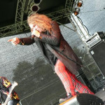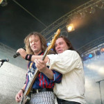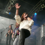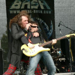 Der anschließende Auftritt der AC/DC-Coverschergen BON SCOTT geriet dann zum irgendwo zwischen peinlich und kultig angesiedelten Highlight des Tages. Die vorwiegend aus Mitgliedern von KICKHUNTER, METALIUM, KNEIPENTERRORISTEN und GRAVE DIGGER bestehende Band konzentrierte sich vornehmlich auf die älteren Sachen der Australier (bei dem Bandnamen auch nicht wirklich verwunderlich) und stieg ganz unorthodox mit dem "Dirty Deeds..."-Klassiker "Squealer" ein, bevor es dann im Laufe des Sets richtig lustig wurde. Als bei Basser Jens Becker das Instrument kurzzeitig ausfiel, musste Sänger Kai "Kreische" Karstens diese Panne überbrücken. "Kennt Ihr Jens Becker? Wer von Euch kennt Jens Becker? Der ist hier voll der Promi, kann sich aber kein vernünftiges Instrument leisten. Ich sag noch: "Jens, kauf Dir einmal was Ordentliches...!", aber nee, und jetzt haben wir den Salat. Na gut, dann eben so... ich hab die Haare schön, ich hab die Haare schön...!"... nach dieser Einlage lag das gesamte Publikum, also die 30 Leute vor der Bühne, wahlweise auf dem Boden vor Lachen oder wanderte kopfschüttelnd zur Bierbude oder beides. Aber vom Entertainment abgesehen, überzeugten BON SCOTT auch musikalisch und bescherten den Anwesenden schön rock´n´rollige 90 Minuten mit Hits wie "TNT" oder "Thunderstruck". Eine so coole Coverband hat man selten gesehen!