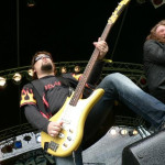 Danach war der Headliner in Form der KNEIPENTERRORISTEN dran, der sich an diesem Abend, schließlich standen Coverbands auf dem Plan, ausschließlich auf Material der Onkelz konzentrierte. Und trotz der wenigen Fans war der Auftritt von Jörn, Goofy und Co. kein Reinfall, sondern eine gelungene Party der eben kleineren Art. Neben den typischen Standards wie "Kneipenterroristen", "10 Jahre", "Heilige Lieder", "Lieber Stehend Sterben", "Erinnerung" und "Mexico" (das komplette Repertoire findet sich auch auf der Homepage der Band), die normal und ohne Motivationsverlust herunter gezockt wurden, blieb auch viel Raum für einige spaßige Einlagen wie das Umtexten von "Bomberpilot" ("... kommt, lasst uns onanieren, onanieren!") oder die Frage: "Wollt Ihr die TOTEN HOSEN hören? Wollt Ihr wirklich nichts von den Hosen hören"?, die natürlich verneint wurde, was Goofy aber nicht davon abhielt, "Eisgekühlter Bommerlunder" kurz anzuspielen. Klar, die Onkelz sind ein Thema für sich, aber wem einfach nur am Spaßfaktor gelegen war, konnte hier wirklich auf seine Kosten kommen, zumal das Quartett über zwei Stunden lang rockte. Ich bin aber der Überzeugung, dass an diesem Tag noch ein größerer, externer Headliner fehlte, der mehr Massen auf das Gelände gelotst hätte.