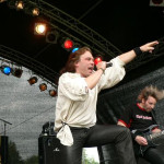 Am Freitag nach der Ankunft pünktlich zum Opener NOGGE hatten sich geschätzte 30-50 Fans versammelt, als die Dithmarscher (meiner Meinung nach schon sichtlich angeheitert) mit ihrem teilweise witzigen Gute-Laune-Rock´n´Roll loslegten. Speziell der Sänger in seiner unglaublich garstigen Karohose schien ordentlich vorgeglüht zu haben, was der Stimmung (wenn man Zugucken und Bier trinken von 10 Leuten vor der Bühne Stimmung nennen will...) jedoch keinen Abbruch tat. Die Jungs spielten eine schön abgefuckte Versionen von "Goldener Reiter", coverten "Durstige Männer" von den DIMPLE MINDS und gaben mit "Highway Zur Shell" bekannt, wie schön es ist, vollgetankt zu sein - sei es das Auto oder man selbst. Ein ganz lustiger Auftritt, für den man aber eigentlich genug intus haben musste, was am frühen Abend noch nicht jeder hinbekommen hatte...