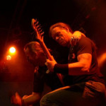 Somit wurde es Zeit für die erste echte Coverband des Abends: POWERSLAVE kamen erwartungsgemäß sehr gut bei den immer noch sehr wenig Beteiligten an und zockten eineinhalb Stunden lang Klassiker von JUDAS PRIEST (kleiner Scherz!). Die Band, die aus Mitgliedern von PARAGON, METALIUM und TORMENT besteht, gehört in ihrem Fach zu den besten der Nation, was unter Anderem auf Neuzugang Buschi, seines Zeichens auch Sänger bei erwähnten PARAGON, zurückzuführen ist. Die Jungs nahmen das übersichtliche Publikum spürbar mit Humor, was einen der Axtschwinger in einer Pause dazu bewegte, seine wahlweise coole/peinliche/kultige Spandexhose zu präsentieren: "Mögt Ihr meine Hose? Gefällt Euch meine Hose?". So wurden dann Allzeit-Hymnen wie "Fear Of The Dark", "2 Minutes To Midnight", "Man On The Edge", "Run To The Hills" oder "The Wicker Man" mitgebölkt, was gerade in dieser eher familiären Atmosphäre viel Spaß bereitete.