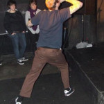 Ein Haufen vermaggelter Finnen machte sich dann nach erneut kurzer Umbaupause ans Werk. Die kleine Bühne bot offensichtlich nicht genug Platz für die komplette Band (oder der Sänger mag den direkten Kontakt mit den Zuschauern), den Sänger sah man während des gesamten Gigs nur sehr kurz auf den Brettern stehen, die meiste Zeit war er direkt vor den Leuten und brüllte ihnen seinen Texte quasi direkts in Gesicht. Seine Sidekicks aktivierten derweil ihre letzen Energiereserven, mit so viel Power können nur wenige Bands am Ende einer Tour noch aufwarten. Schnell, direkt und schön brutal gingen LIGHTHOUSE PROJECT zu Werke, HC/ Punk, wie er Live immer wieder Spaß macht. Eine gelungene Show, die beim Publikum aber nicht für viel Bewegung sorgen konnte. Hatten wahrscheinlich Angst vorm Sänger.