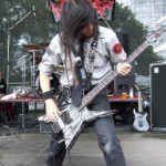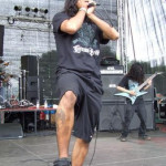 Und hatten mit einem merkwürdigen Sound zu kämpfen. Direkt vor der Bühne klang alles bestens, aber etwas weiter weg ließen sich anfangs nur die Drums und der Gesang vernehmen, der Rest ging in einem Soundmatsch unter. Der Soundmensch rotierte und bekam die Probleme nach einigen Songs in den Griff, die vorzüglich-brutalen ORIGIN konnten dann mit einem würdigen Sound genossen werden. Was die Amis an technischen Fähigkeiten präsentierten, war wie gewohnt beeindruckend und da auch beim Songwriting alles stimmt, kam keine Langeweile auf. Die Band hat sich auf ihrer Tour warmgespielt und präsentierte sich aufeinander eingespielt und motiviert, was für ordentliche Action vor der Bühne sorgte.