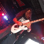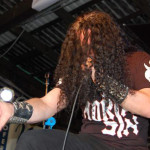 Plötzlich sind sie alle da. Also nicht nur die Australier von MORTAL SIN, sondern auch vor der Bühne versammelt sich sämtliches Fan-Volk. Ob es an den Auftritten während der Overkil-Tour lag, vermag ich nicht zu sagen, aber der Zuspruch nimmt euphorische Ausmaße an – wenn die Band früher so einen Erfolg gehabt hätte, hätte die Fangemeinde nicht so lange darben müssen. Meine Herren, was hat der Maggiflaschen-große Basser Andy Eftichiou einen Heiden-Spaß am Spielen, was für eine Bühnenpräsenz hat Mat Maurer immer noch (und wie viel Haar). Da er aber auch noch gut bei Stimme ist, gibt es einen wunderwasvonenergiegeladenen Thrash-Auftritt und das erste echte Hochlicht des noch jungen Tages. Unter anderem kloppten die Jungs aus New South Wales folgendes in die ausflippenden Hundertschaften: