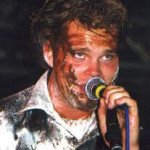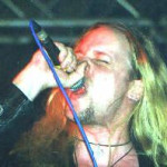Anfangen durfte an diesem Abend die Band GARDENIAN um ihren Frontman Jim Kjell ( Bild links). Da ihre zweite CD "Soulburner" gerade erst veröffentlicht worden war, kannte natürlich kaum keiner ein Lied von dieser Scheibe, dementsprechend war auch die Stimmung zu Beginn nicht unbedingt so gut. Während der Sound auf ihrer CD sehr powermetallisch rüberkommt, sind sie live eher dem Blackbereich zuzuordnen. Ein schreiender Sänger (mit kurzen Haaren!!!), druckvolle Drums und schreddernde Gitarren, genauso muß Metal sein. das haben die Leute dann auch recht schnell kapiert, und bei Songs wie "Deserted", dem schnellen "Chaos in flesh" und dem Song "Black days" (alle vom neuen Album", konnte man die ersten Leute bangen sehen. Ach ja, die an diesem Abend etwas durchgeknallten Stagehands haben die ganze Band noch mit irgendsowas wie Schlamm angemalt und einer von ihnen hat sich beim Versuch als Feuerspucker zu begeistern den Arm verbrannt, aber naja es war das letzte Konzert auf der Tour, aber dazu später noch mehr.