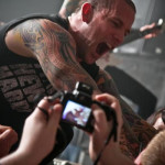Nach BENEATH THE MASSACRE kamen BLEEDING THROUGH, die ich mit Spannung erwartet habe. BLEEDING THROUGH sehen optisch eher wie eine Punk Band aus, haben eine hübsche Keyboaderin im Gepäck und scheinen, was den männlichen Rest der Band angeht, ständig unter dem Tattoomesser zu liegen. Soviel zu den Äußerlichkeiten. Nach dem Intro ging es dann direkt zur Sache. Beim Publikum platzte nun auch der letzte Knoten. Ständige Circle Pits und Stagedives ließen einen kaum zur Ruhe kommen. Die Halle hatte sich nun merklicher gefüllt, wobei sie bei weitem nicht ausverkauft war. Einige Songs von BLEEDING THROUGH haben atmosphörische Keyboardparts, die mich an CRADLE OF FILTH erinnerten. Trotzdem hat die Band musikalisch ihre eigene Richtung gefunden und wird mich bestimmt wieder zu einem Konzert von ihr locken. Leider war die Band nicht optimal abgemischt. Das Keyboard war eindeutig zu leise, was den sehr positiven Eindruck aber nicht schmälerte. Die Setliste des Auftritts lautet wie folgt: