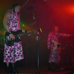 Der Start dieses Abends um eine Minute nach Acht verlief dann doch (leider) etwas anders als erwartet, denn ursprünglich war ja die in Walldürn schon bekannte Münchner Band ALEV als Einheizer für J.B.O. vorgesehen - aus für Außenstehende unverständlichen Gründen (der Konzertvermittler bzw. der Hauptact bestand auf seinen "eigenen" Support) durften ALEV daher relativ kurzfristig nicht auftreten. Stattdessen enterte eine Combo namens MARSHALL BRAINSTORM die Bühne in der mit ca. 900 Zuschauern recht gut gefüllten Halle. Und der Beginn war schon etwas "befremdend". Denn was da aus den Boxen schallte mag zwar musikalisch gut gewesen sein, aber die Mischung aus Ska, Rock’n’Roll und Rock mit fast jazzigen Einlagen (welche vor allem die ersten beiden Songs kennzeichneten), passte schon gar nicht zu dem, was ein Publikum in Zusammenhang mit einem J.B.O. Konzert hören möchte. Auch dass die Band mit einem waschechten Kontrabass auftrat machte dies nicht besser und war wohl für die meisten nur ein "Hingucker". Stimmung wollte erstmals aufkommen, als ein nicht ganz so sperriger Song unvermuteter Weise in ein hartes Deep-Purple-Solo überging (ich glaube es war das Live-Solo von "Woman From Tokyo"), welches auch exzellent gespielt wurde. Auch noch bemerkenswert war eine Cover-Version von Motörhead’s "Ace Of Spades" - man brauchte zu Beginn aber etwas um den Song in diesem äußerst langsamen Gewande zu erkennen. Allerdings schalteten die vier Jungs dann merklich einen Gang zu (Originaltempo), wobei der Drummer mit seinen Vocals gar nicht allzu weit weg war vom unvergleichlichen Lemmy-Gesang - das war schon ein Weckruf für das Publikum, allerdings war da der Set schon fast vorbei. Nach einem recht furiosen Schluss mit harten Gitarren erhielten MARSHALL BRAINSTORM zwar höflichen Applaus eines Teils der Zuschauer (Zugaberufe blieben aus), waren aber doch irgendwie fehl am Platze. Nach diesen knapp 45 Minuten schallten doch unüberhörbar laute J.B.O.-Rufe durch die Walldürner Nibelungenhalle.