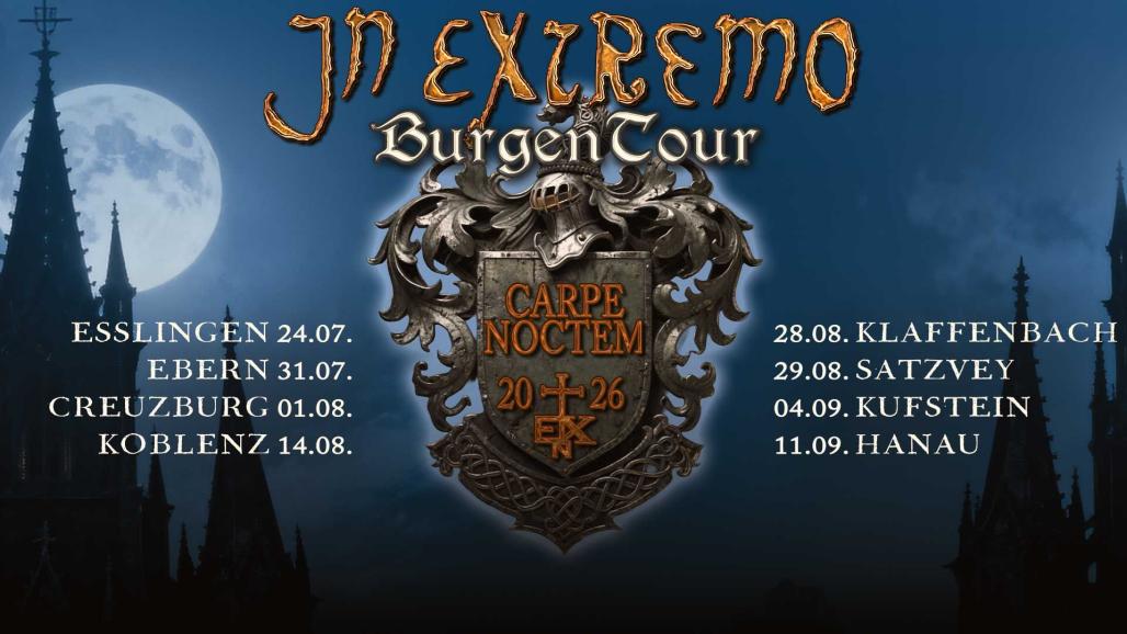 Im Sommer 2026 kehrt dieses Ausnahmeformat endlich zurück: Für 8 Termine bringen In Extremo ihre imposanten Live-Shows an ausgewählte Burgen und historische Orte, die wie geschaffen sind für ihre epische Inszenierung. Auf dem Programm stehen ikonische Hits, lange nicht gespielte Juwelen, mitreißende Melodien und die unverwechselbare Bühnenpräsenz einer Band, die seit 30 Jahren Maßstäbe setzt.