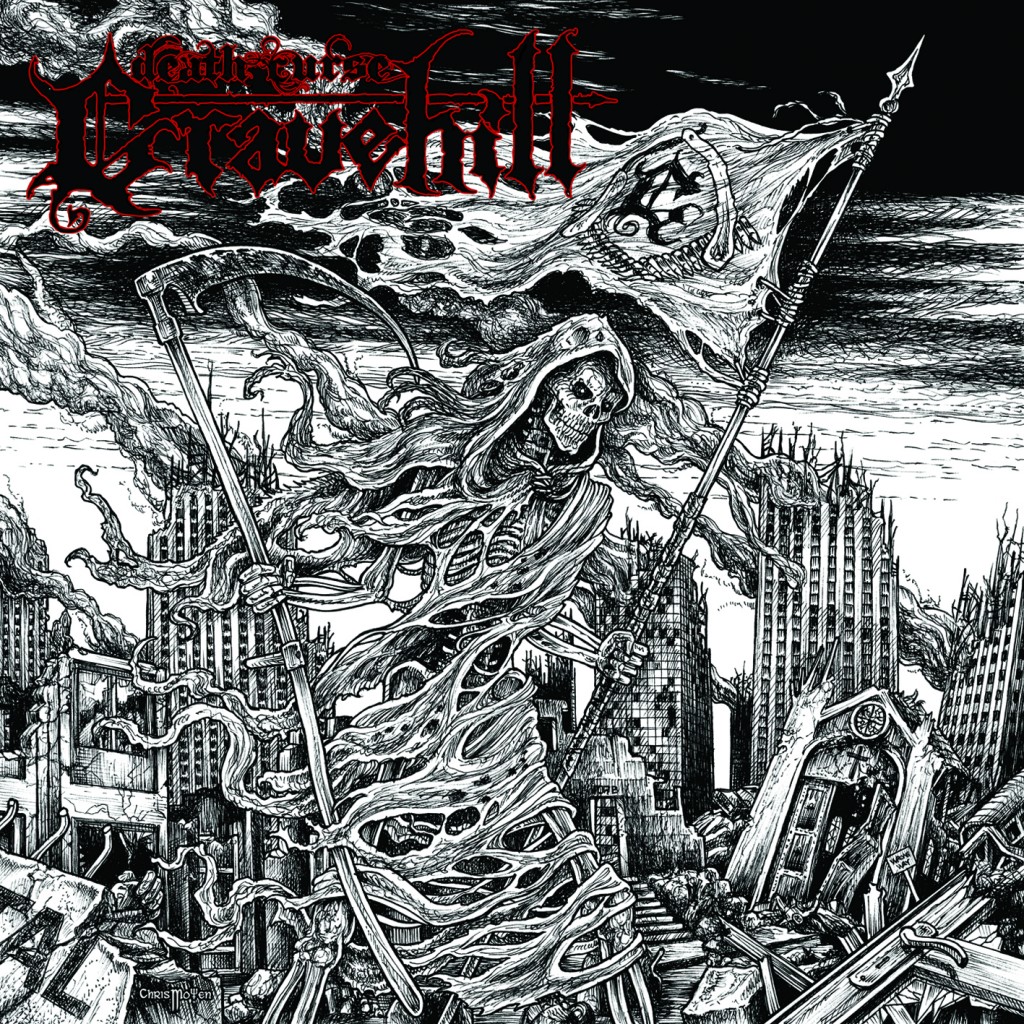 Leder, Nieten, Patronengurte und posen bis zum Abwinken....so präsentieren sich GRAVEHILL dem geneigten Hörer um gleich klar zu machen worum es geht - Oldschool! Nach dem Intro werden dann auch keinerlei Gefangene gemacht, sondern GRAVEHILL knallen einem mit "Death Curse" gleich einen Death-Thrash-Black-Knaller um die Ohren, der einen ganz tief in den heimischen Schützengraben kriechen laesst. Salve für Salve hämmert einem gnadenlos das gravehillsche Trommelfeuer auf einen ein. Mike Abominator keift so grimmig ins Mikro, das einem die Spuckefäden förmlich um die Ohren fliegen und man wird sehr an Mika Luttinen von IMPALED NAZARENE erinnert, was sich über das ganze Album zieht. Immer wieder kann man Parallelen zu ImpNaz ziehen, ohne GRAVEHILL reines abkupfern vorwerfen zu koennen. Die Geschwindigkeit wird dann auch gleich bei "In Hells Command" beibehalten und man hat schon befürchtungen die Jungs trümmern sich nun über das ganze Album ohne Abwechslung ins Langeweilenirvana.
