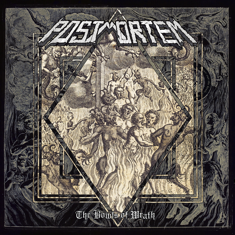 Die Berliner Truppe, die uns an ihrem "Brutz & Brakel"-Stand jedes Jahr auf dem "Party.San"-Festival bis zum sprichwörtlichen Umfallen leckere Cocktails kredenzt, ist bereits ein knappes Vierteljahrhundert aktiv, hat jedoch erst sechs Alben auf dem Buckel, denen sich mit "The Bowls Of Wrath" nun Werk Nummer sieben anschließt. Und dieses knüpft nahtlos an das großartige bisherige Schaffen des Quartetts seit seinem Comeback-Album "Constant Hate" von 2008 an; seit rund sieben Jahren befinden sich POSTMORTEM auf einem kreativen Hoch, das ungebrochen scheint. "The Bowls Of Wrath" ist ein todesmetallischer Midtempo-Wutklumpen, der mit der treibenden Ohrwurm-Hymne "Until The Screamings Died" mehr als beeindruckend startet und danach mit "Pagan God", dem fiesen Stakkato-Riffmassaker "Hate Covers Hate" (inklusive doomigem Mittelteil!), dem lupenreinen Death Metal-Hit "Oops!... I Killed Again" (sicher ein zukünftiger Live-Abräumer), dem saugeilen Titelsong (mit serienmäßig eingebautem Operngesang - man glaubt es nicht!), dem eingängigen "Doomsday Killer" oder dem abschließenden Stampfer "Blood Of The War" weiteres erstklassiges Material auffährt, dem man allerhöchstens mangelnde Abwechslung vorwerfen kann, doch das war POSTMORTEM, wie eben auch bei den meisten anderen Genre-Bands, noch nie ein Thema. "The Bowls Of Wrath" ist daher, wie seine drei Vorgänger, ein Spitzenalbum auf internationalem Niveau, das sich ganz sicher nicht hinter den letzten Erzeugnissen von ASPHYX, AUTOPSY, OBITUARY, GRAVE und Co. verstecken muss und diese sogar zum größten Teil überragt - klasse!