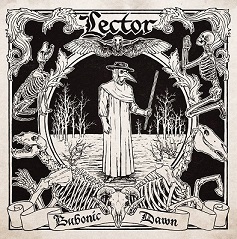 Bei LECTOR hat schon wieder Ced Forsberg (ROCKA ROLLAS, BREITENHOLD, BLAZON STONE etc.) seine Finger im Spiel. Diesmal aber in Funktion einer Rhythmussektion – jawohl Bass und Schlagzeug. Sein Partner in crime ist hier Robbin, welcher sich für die Gitarren und den harschen Gesang verantwortlich zeigt. LECTOR bieten eine obskure Mischung aus epischem Doom, frühem Death Metal und etwas kauzigem Stoff. Gerade die epischen Leadgitarren wie in „Moonlit Chase“ sind es, die „Bubonic Dawn“ so angenehm zu hören machen. Man hört auch Reminiszenzen an ganz frühe THERION (pre-„Theli“) oder gar MOONSPELL zu „Wolfheart“-Zeiten. Die deathigen Vocals werden oft in schwedisch vorgetragen, was sehr gut zu den elegischen Hymnen passt. Die Riffs sind simpel, aber effektiv. Während bei vielen Acts die Melodieführung meist vom Gesang übernommen wird, sind es hier oftmals die Gitarren. Bleibt unterm Strich eine herrlich anachronistische und untrendige Scheibe, welche Freunden harscher Düstermucke ans Herz gelegt werden darf.