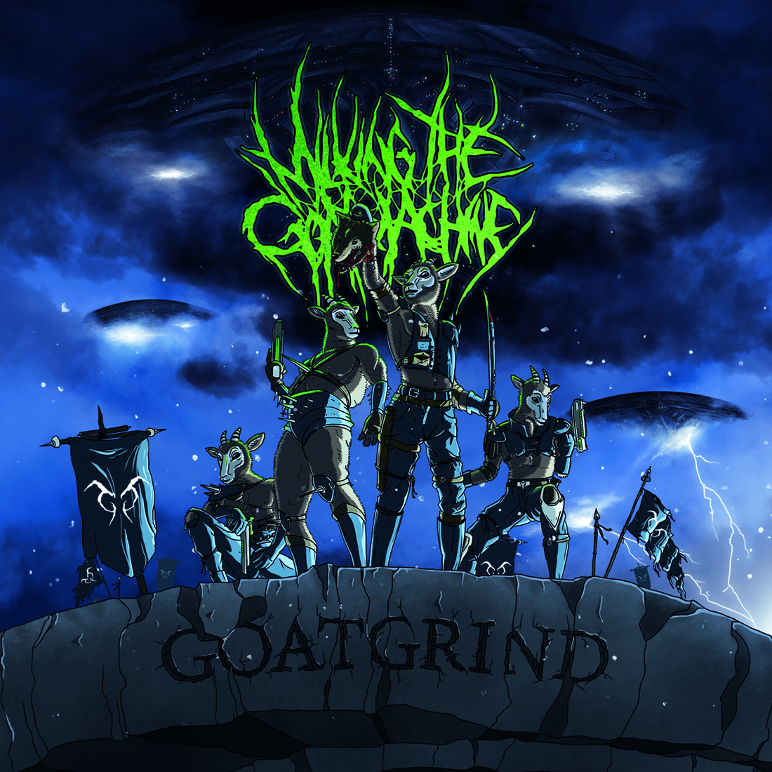 Nach ihrem Coveralbum melden sich MILKING THE GOATMACHINE mit ihrer neuen Scheibe "Goatgrind" zurück. Während sich die Ziegenköpfige Band mit ihrem Coveralbum sowohl reichlich Freunde wie auch Feinde gemacht haben, servieren sie nun wieder ihrem typischen Deathgrind mit eigenen Texten und Songs.