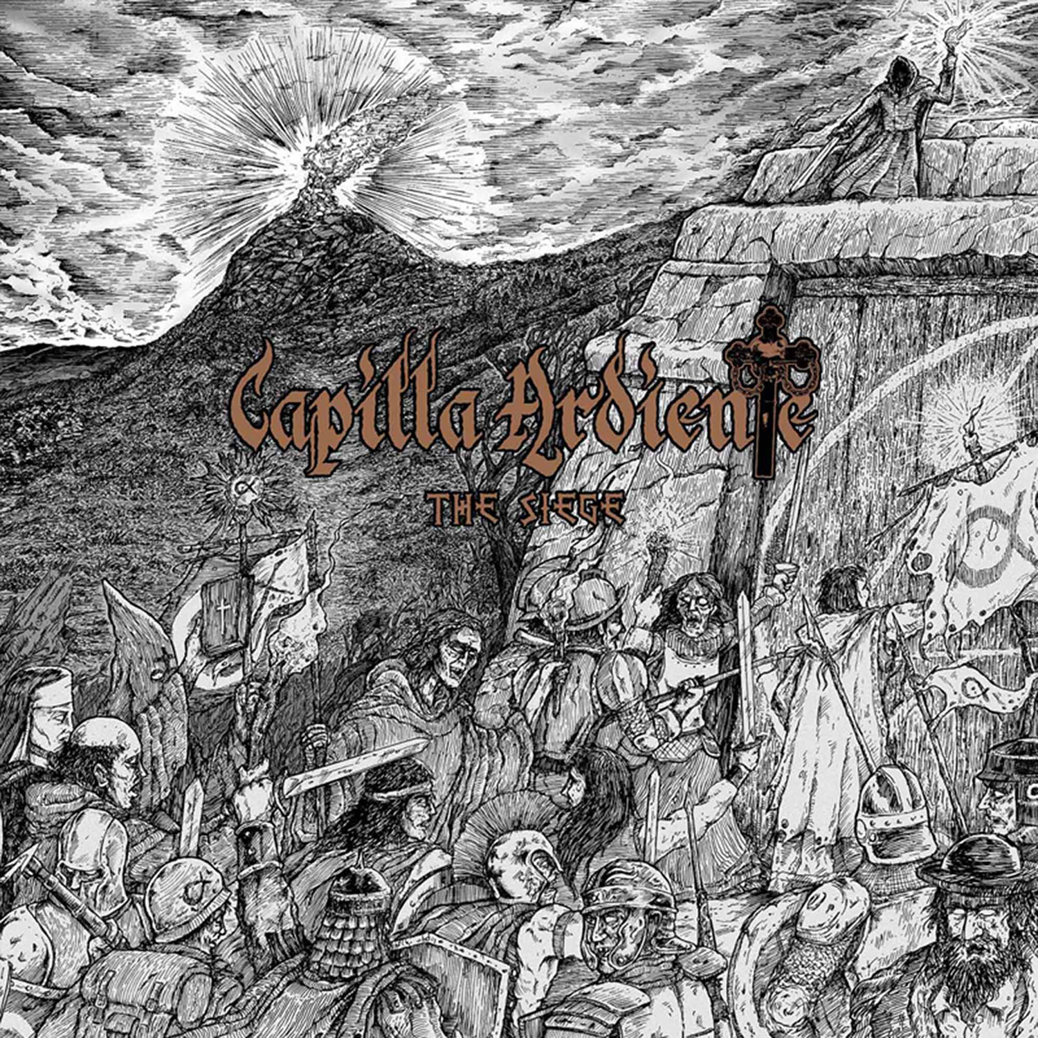 Ich muss gestehen, das mir sämtliche Veröffentlichungen des chilenischen Quintetts um die beiden auch bei PROCESSION aktiven Recken Felipe Plaza Kutzbach (der hier ausschließlich für den Gesang zuständig ist) und Claudio Botarro Neira (Bassist in beiden Bands) seit der 2009er Debüt-EP "Solve Et Cuagula" durch die Lappen gegangen sind, wobei: es sind nur zwei. Massenware ist von CAPILLA ARDIENTE also nicht zu erwarten, und im Gegensatz zu den deutlich präsenteren und aktiveren PROCESSION liefern CAPILLA ARDIENTE auch heute noch das sperrigere Songmaterial ab, denn die vier Songs auf "The Siege" liegen zweimal über der Zehn-Minuten-Marke, zweimal nur knapp darunter. Entsprechende Einarbeitungszeit ist demnach gefragt, denn Stücke wie "The Crimson Fortress" oder "Fallen Alphas And The Rising" sind trotz ihrer hohen Melodiösität und des einmal mehr herausragenden Gesangs von Herrn Kutzbach alles andere als eingängig und dringen sogar in progressive Regionen vor. Stellenweise hat man das Gefühl, dass es sich hier eher um ein Projekt handelt, bei dem die beiden oben genannten Protagonisten ihre Vorliebe für ausschweifende Komplexität ausleben können, die bei ihrer deutlich eingängigeren Hauptband nicht ins Konzept passt. Denn auch wenn ein Album wie "The Siege" ein starkes Stück Epic Doom darstellt, kommt es in Sachen Intensität und packendem Songwriting nicht an die letzten Erzeugnisse von PROCESSION heran und auch nicht - um gleich bei High Roller Records zu bleiben - an das zeitgleich erschienene Meisterwerk der Amis CRYPT SERMON, "The Ruins Of Fading Light". Aus diesem Label-internen Wettkampf gehen CAPILLA ARDIENTE leider nur als dritter Sieger hervor, wobei jedoch die Betonung auf "Sieger" liegt.