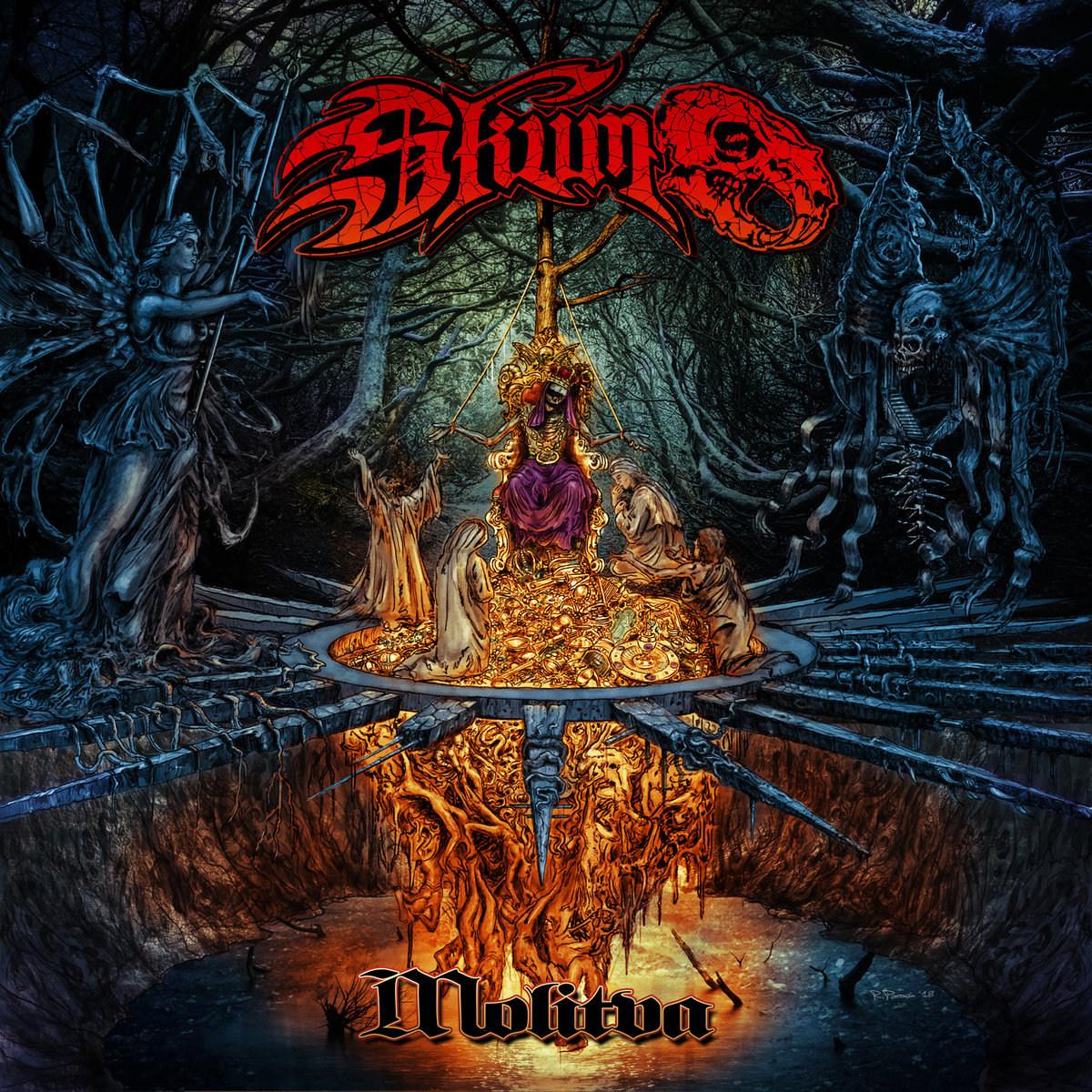 Sieben Jahre ist es schon her, dass die Kölner SKUM „Prašina“ veröffentlichten. Nun also „Molitva“, das ist wieder kroatisch und bedeutet „Gebet“. Mit kirchlichem Treiben hat das alles nix zu tun. Sänger Nikola grunzt erneut wie eine wildgewordene Sau, SKUM thrashen gekonnt und kratzen immer mal wieder kräftig am Death Metal – oder kacken sie gar auf Genregrenzen? Um es deutlich zu machen: 60 Prozent Thrash, 40 Death. Oder andersherum? Ist ja auch egal, denn wer Songs wie das eröffnende Titelstück oder das folgende „Cowards“ schreibt, der wird auf beiden Territorien seine Fans finden. Überhaupt halten auch die restlichen Songs (insgesamt zehn auf der Vinyl-Version) das Niveau, Ausfälle? Nula! Dazu trägt bestimmt auch der hervorragende Sound bei, der auch aus durchschnittlicheren Songs wie „Need“ ein sehr hörenswertes Stück macht. Noch dazu ist diese LP so richtig schick. Das tolle Cover mit goldenem Thron, Tod und Engeln ziert eine Hülle, in der 180-g-Vinyl steckt – in wunderschickem Blau. Dazu ein Poster, eine ansehnliche schwarze Innenhülle, eine leichte Schutzhülle... Hach, 300 Stück, watt schön. Einen vermeintlich ganz großen Nachteil hat diese ansonsten so tolle LP dann aber doch. Die CD-Version enthält ein Cover des GENESIS-Pop-Hits „Jesus He Knows Me“. Die ist allerdings derart wuchtig ins thrash-deathige transferiert, dass dieser Song auch gern auf der LP hätte sein können. Nachteil? Denkste! Denn SKUM legen die CD der LP bei, eine reine CD-VÖ gibt es gar nicht, nur noch Download-Varianten. Das nennt man mal Service für 15 Euro plus Porto und Verpackung! Also: weitere Informationen einholen, bestellen, alles hier!