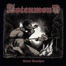 Bleibt alles anders, zumindest bei den schwäbischen Düsterpunks, Metal Corelern, oder wie auch immer man die Musik des Trios bezeichnen mag. Eines vorweg: wer die Band noch nie mochte, wird auch mit "Unter Knochen" nicht glücklich werden, denn verglichen mit dem Vorgänger "Reich In Rost" (dessen Niveau "Unter Knochen" nicht ganz erreicht) sind die Jungs noch einen Zacken extremer geworden, was sich besonders in den "schrammeligen", teilweise schon matschig klingenden Gitarren, dem blechernen Snare - Sound (Marke "St. Anger") und den kaum noch verständlichen Vocals äußert. Soundtechnisch ist das Album ein (gewollter) Rückschritt zu Räudigkeit und einer Sechs im Betragen. Eine menschenfressende (passend zu einem der Songtitel) Bestie benutzt nun mal nicht Messer und Gabel. TOTENMOND praktizieren extreme Musik, die düster, kalt, brutal und hemmungslos alles Lebensbejahende wegspült und zertritt. In Kombination mit den sperrigen Songs, die hin und wieder ein paar Längen haben (hier wäre weniger vielleicht noch mehr gewesen), ergibt das eine Mischung, die man entweder nur lieben oder hassen kann. Hört Euch zum Beispiel mal das ultrabrutale "Unkraut" an oder den zähen Anfang von "Der Ich - Parasit" oder das fies beginnende und dann in einer Zeitlupen - Orgie endende "Zu Gast Bei Den Toten". Viele Riffs könnte man problemlos der Death - und Thrash Metal - Szene zuordnen, so dass der Punk - Einfluss sehr in den Hintergrund getreten ist und nur ab und an noch durchschimmert (zum Beispiel bei "Leuchtquell" - einem weiteren Höhepunkt). Mir ist bewusst, dass man "Unter Knochen" je nach Standpunkt auch absolut grottig finden kann, aber dieser Umstand taucht in der Bilanz auf. Es gibt keine andere mir bekannte deutschsprachige Band, die es schafft, Musik ohne jeglichen Blick auf den Kommerz in derartige Extreme zu führen und dabei nicht lächerlich und/oder qualitativ minderwertig zu wirken. Beispielhaft!